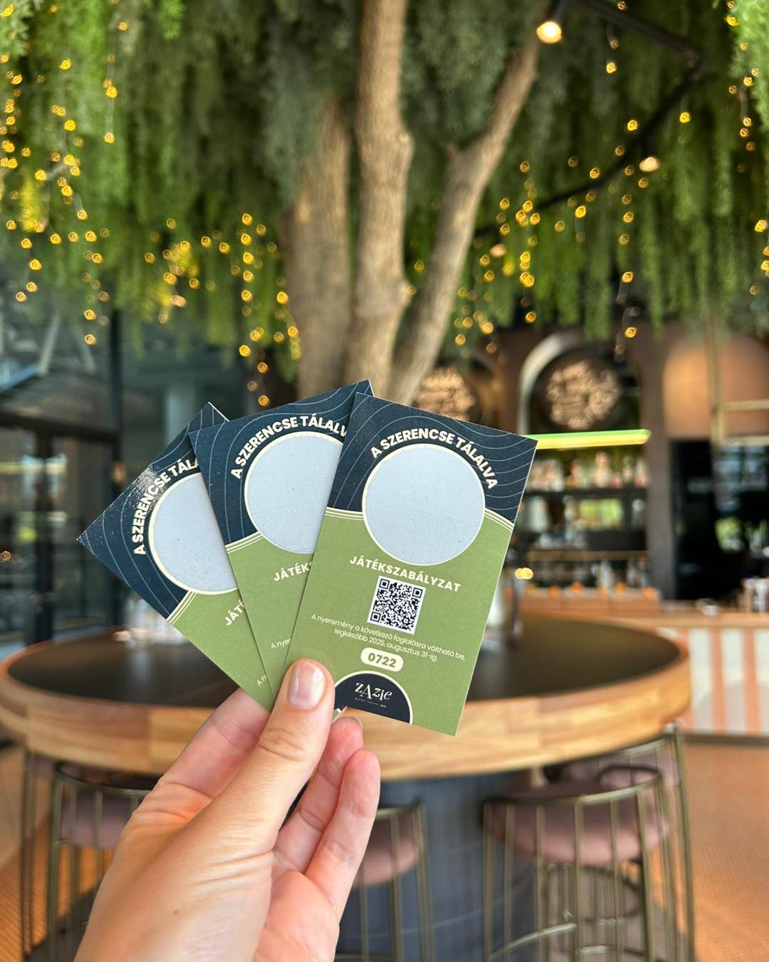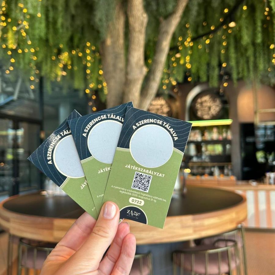 Játssz velünk és szerezz értékes nyereményeket, amelyeket a következő látogatásod alkalmával beválthatsz! Mit rejtenek a kaparós sorsjegyek? Ajándék koktél, főétel, desszert, 50.000 Ft értékű Zazie voucher és még sok más!😉 A legszerencsésebbek pedig akár egy két fős wellness hétvégét is nyerhetnek!